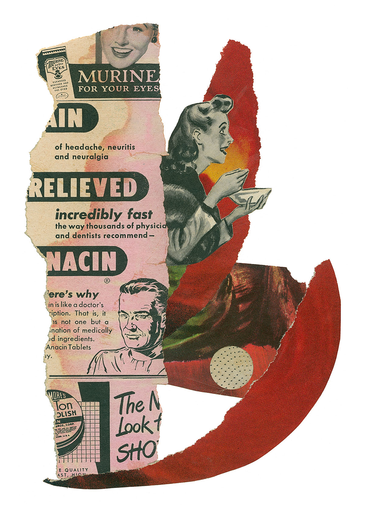 5x7 in, Found papers and acrylic on paper