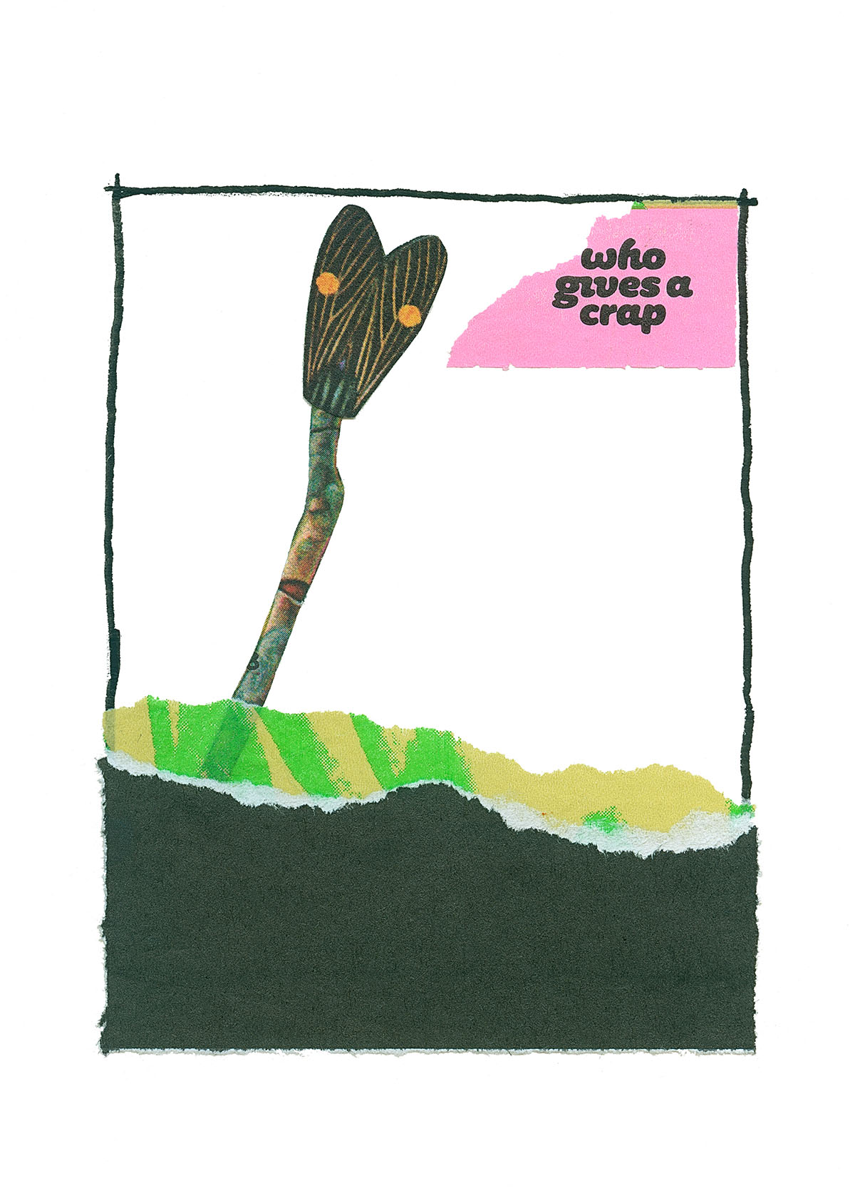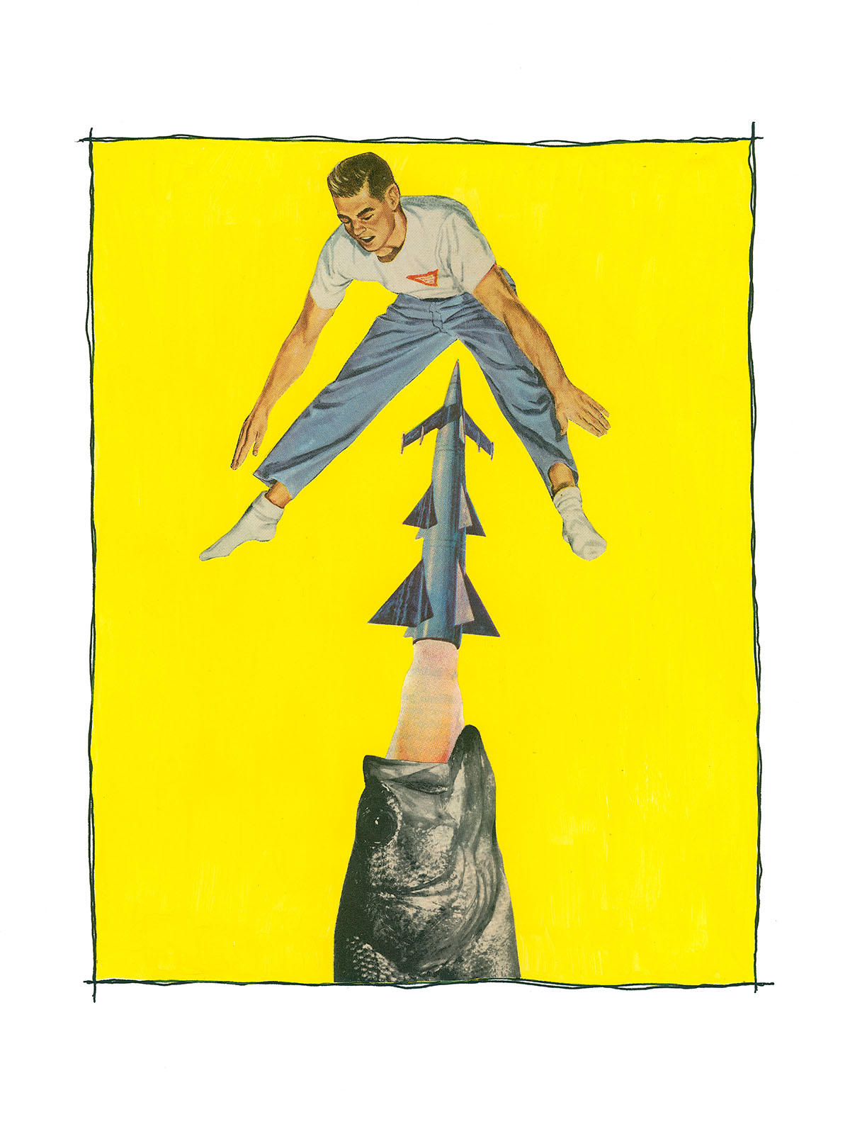 7x10 in, Found papers, pen and acrylic on paper